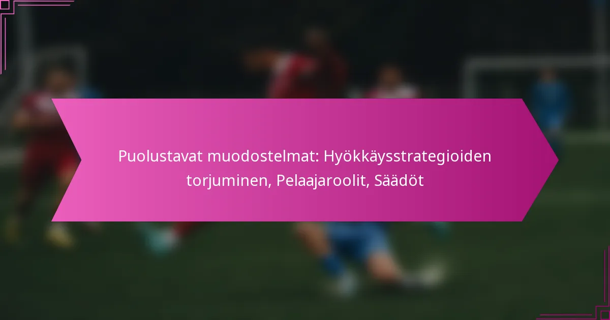 Puolustavat muodostelmat ovat rakenteellisia pelaajien järjestelyjä, jotka on suunniteltu tehokkaasti vastaamaan hyökkäysstrategioihin. Ennakoimalla vastustajan pelit ja mukauttamalla sijoittumistaan, puolustukset voivat häiritä hyökkäyksen kulkua ja minimoida maalintekopaikat.