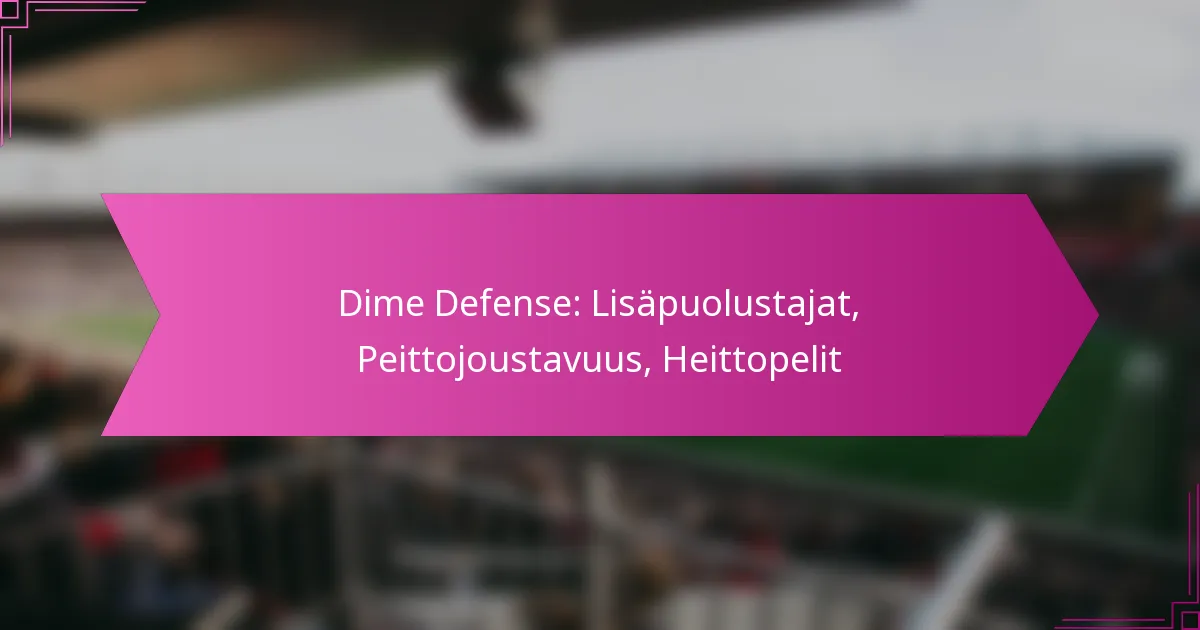 Dime Defense on strateginen formaatio jalkapallossa, joka käyttää kuutta puolustavaa takakenttäpelaajaa, ensisijaisesti vastatakseen heittotilanteisiin. Tämä asettelu parantaa peittojoustavuutta ja mahdollistaa erikoistuneet roolit kulmapelaajien ja safety-pelaajien kesken, mikä on ratkaisevaa ilmapelien puolustamisessa.