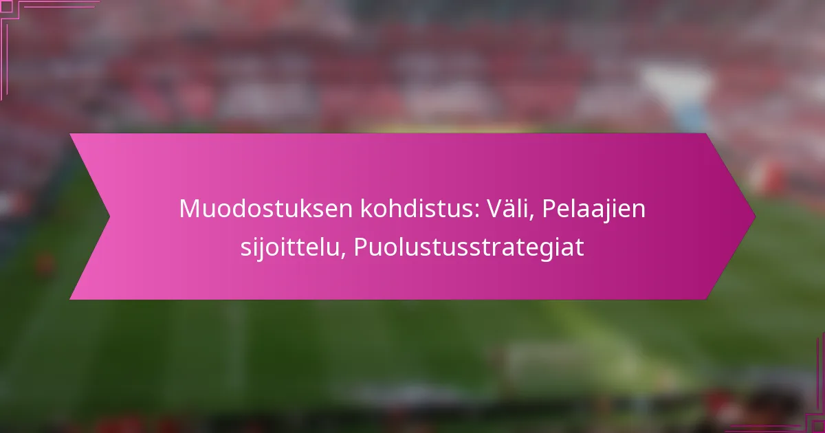 Puolustuksen kohdistaminen muodostelman mukaan vaatii huolellista harkintaa pelaajien sijoittamisesta ja välistä. Joukkueiden tulisi varmistaa, että puolustajat on sijoitettu kattamaan avainalueita, samalla kun ylläpidetään tiivistä muotoa rajoittaakseen vastustajan vaihtoehtoja. Esimerkiksi 4-4-2 muodostelmassa keskikenttäpelaajien tulisi tukea puolustusta palaamalla ja sulkemalla tiloja.